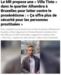 Une Villa Tinto à 1000 Bruxelles ?Lors des élections communales de 2024, nous avons appris dans les médias que la section MR+ de la Ville de Bruxelles souhaitait une Villa Tinto dans le quartier Alhambra. Il y a donc eu une réaction immédiate du bourgmestre Philippe Close qui ne comprenait absolument pas pourquoi on voulait ouvrir un bordel dans le quartier Alhambra, alors qu'il venait de passer les dix dernières années à faire tout son possible pour faire disparaître la prostitution de rue du quartier.En tant que comité de quartier, nous avons toujours été favorables à une Villa Tinto sur le modèle anversois, mais pas dans le quartier Alhambra. Dans ce cas, il faudrait interdire la prostitution de rue, comme cela s'est fait à Anvers. En 2006, le promoteur immobilier Franky De Coninck nous a présenté les plans d'un projet de Villa Tinto à Schaerbeek, mais celui-ci a été immédiatement rejeté, principalement par les associations de prostitution.‘Non à une Villa Tinto à Bruxelles’ - Le Soir - 15/04/2006:https://www.lesoir.be/art/non-a-une-villa-tinto-a-bruxelles_t-20060415-0054N3.htmlEn 2013, Franky De Coninck a décidé d'abandonner le projet en raison du manque de soutien politique à Bruxelles. Entre-temps, son projet à Anvers - lancé avec la majorité SP.a du bourgmestre Patrick Janssens - a attiré l'attention du monde entier en tant que modèle pour rendre les quartiers de prostitution difficiles à nouveau vivables. Par le passé, nous avons eu de nombreux contacts avec le MR dans le cadre de la création d'un centre Eros dans la région bruxelloise.Marion Lemesre a visité la Villa Tinto à Anvers en 2012 et a défendu le projet pendant des années en tant qu'échevine - avec le comité de quartier - dans la majorité de l'époque. Un aperçu de ses actions est disponible sur notre site web :http://www.comitealhambra.be/lemesre.htmMais depuis l’arrivée au pouvoir de la nouvelle majorité en 2018, nous n’avons plus entendu parler de la MR au sujet d’une Villa Tinto pendant six ans, contrairement à Bianca Debaets du CD&V et Mathias Vanden Borre de la NVA qui ont bel et bien continué à faire campagne depuis l'opposition, aussi au niveau régional.Un aperçu des actions que vous avez menées en tant que parti d'opposition au cours des six dernières années est disponible ici :http://www.comitealhambra.be/mr.htmDe plus, une Villa Tinto doit être réalisée au niveau régional.David Weytsman affirme dans une vidéo pendant les élections communales de 2024 que malgré l'interdiction de la prostitution, rien n'a changé dans le quartier Alhambra. Deux remarques à ce sujet :1. Le bourgmestre Philippe Close a élaboré à trois reprises un règlement de prostitution interdisant la prostitution de rue dans le quartier Alhambra. Un certain nombre de TDS - sous la pression des associations de prostitution - l'ont à chaque fois contesté devant les tribunaux. Le conseil d’Etat a finalement décidé que le règlement de police pouvait rester en vigueur. Ce qui a été suspendu, c’est la perception d’amendes administratives (SAC). Étant donné que le parquet n'accorde pas la priorité à la prostitution de rue, cela signifie que la réglementation sur la prostitution ne peut de facto plus être appliquée, à la grande frustration du bourgmestre Philippe Close.De plus, le juge a estimé qu'il n'y avait pas d'alternative pour les prostituées de rue sur le territoire de 1000 Bruxelles. Il y a bien la rue d'Aerschot, à 15 minutes du quartier Alhambra - qui est aux yeux de Philippe Close une sorte de Villa Tinto - mais il s'agit d'une autre commune. On retombe donc sur la question des 19 communes qui ont chacune une vision différente du travail du sexe.2. La seule solution pour faire disparaître la prostitution de rue du quartier est de fermer les hôtels de passe. Le Studio Europe, situé dans la rue des Commercants, a finalement fermé ses portes en juin 2023 après une lutte de plusieurs années. Très vite, une partie du quartier n'a plus été prise en otage par la prostitution de rue et l'atmosphère s'est considérablement améliorée dans les rues autour de l'hôtel.En revanche, l'autre hôtel de prostitution Studio 2000, situé dans la rue Van Gaver, continue de fonctionner à plein régime et, à l'intersection de cette rue et de la rue des Commerçants, l'ambiance est franchement mauvaise. Les riverains se plaignent des nuisances sonores, des déchets laissés par les prostituées et leurs clients, de la consommation de drogue et de toute autre nuisance typiquement liée à la prostitution.Ce n'est pas rien, comme le prouve la situation dans l'Aerschot, où la situation est complètement déréglée, et où le quartier Alhambra menaçait lui aussi de sombrer il y a une dizaine d'années.Ans Persoons (Vooruit) a discrètement entretenu pendant des années de nombreux contacts avec les différents hôtels de prostitution dans le but de les inciter à fermer.Avec le Studio Europe, elle a réussi. Le Studio 2000, en revanche, continue de susciter la frustration. En juin 2025, lors d’une réunion avec le bourgmestre Philippe Close, nous avons indiqué qu’il existe bel et bien une alternative à la prostitution de rue sur le territoire de la Ville de Bruxelles, contrairement à ce qu’avait jugé le tribunal il y a des années lorsqu’il a annulé le règlement de police, à savoir le Studio 2000.Nous proposons que les travailleurs et travailleuses du sexe et les clients se rencontrent à l’intérieur du l’hôtel de prostitution Studio 2000, jusqu’à sa fermeture définitive. Cela présente un avantage pour tout le monde : plus de nuisances dans la rue et des conditions de travail plus sûres et plus hygiéniques pour les TDS.Le règlement de police pourrait alors être réactivé avec des amendes administratives (SAC) pour les clients et pour les TDS qui continueraient à racoler dans la rue, ce qui est de toute façon interdit p